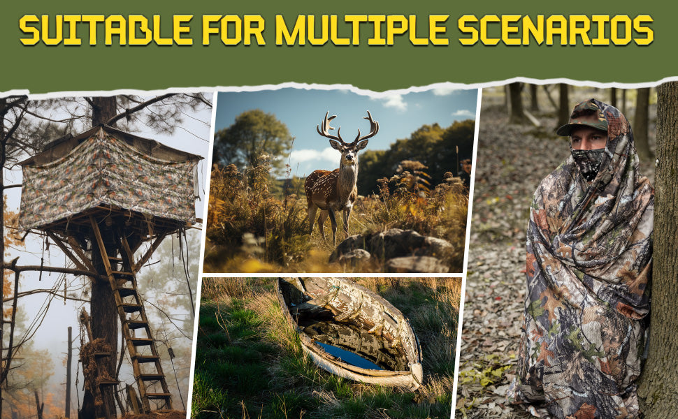 Lenotos Double Sided Camouflage Mesh Fabric, Quiet and Soft Camo Netting for Hunting, Tree Stand, Multi Size & Cut(Leaf & Dry Grass, 2 Yd)